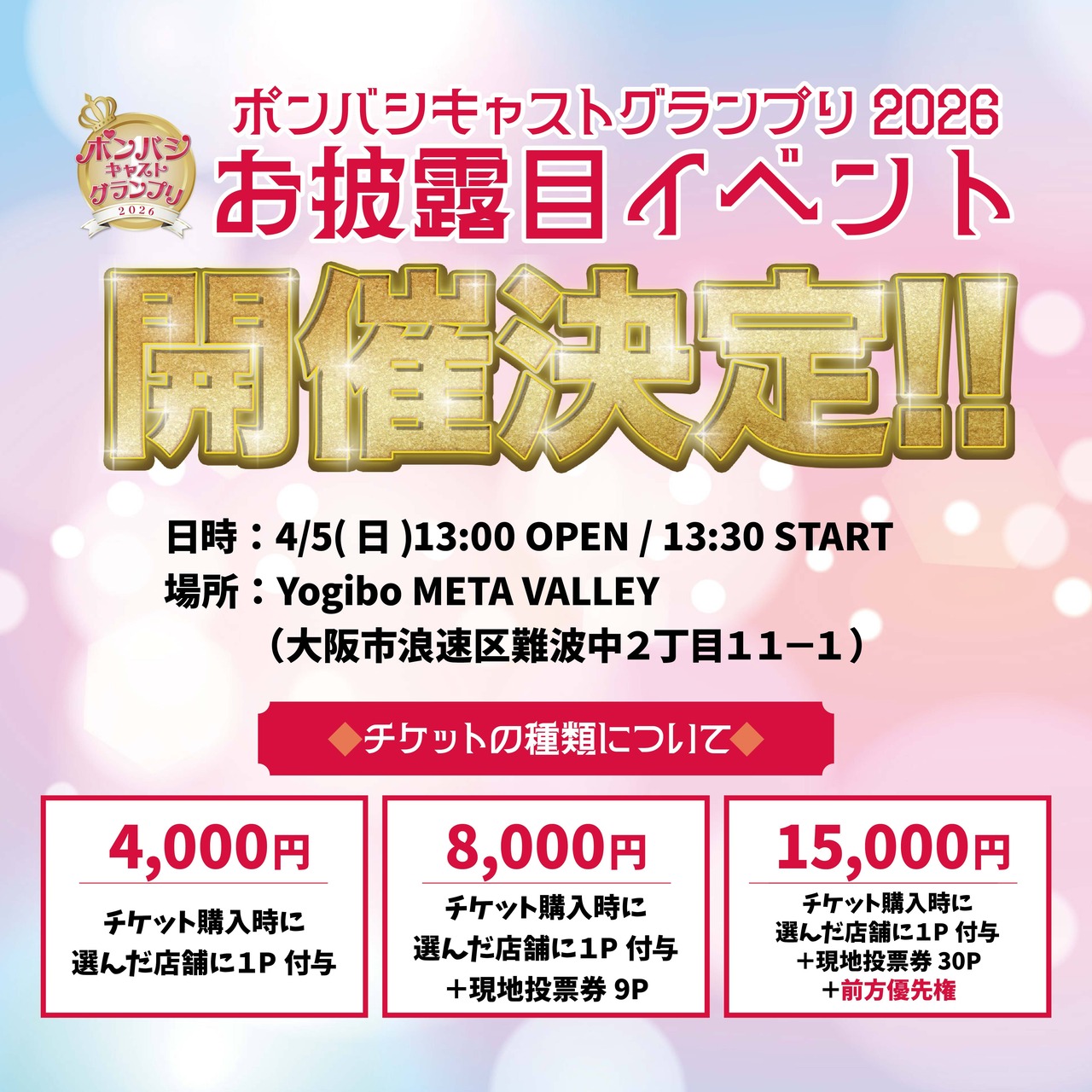 【31P+前方優先権】ポンバシキャストグランプリ2026お披露目チケット